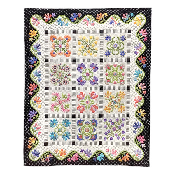 The array of prize-winning quilts from the AQS Des Moines Quilt Show were outstanding. Above is the third place winner, FLOWER CARNIVAL, by Naomi Otomo of Saitama, Japan in the Hand Quilted Quilts Category.
