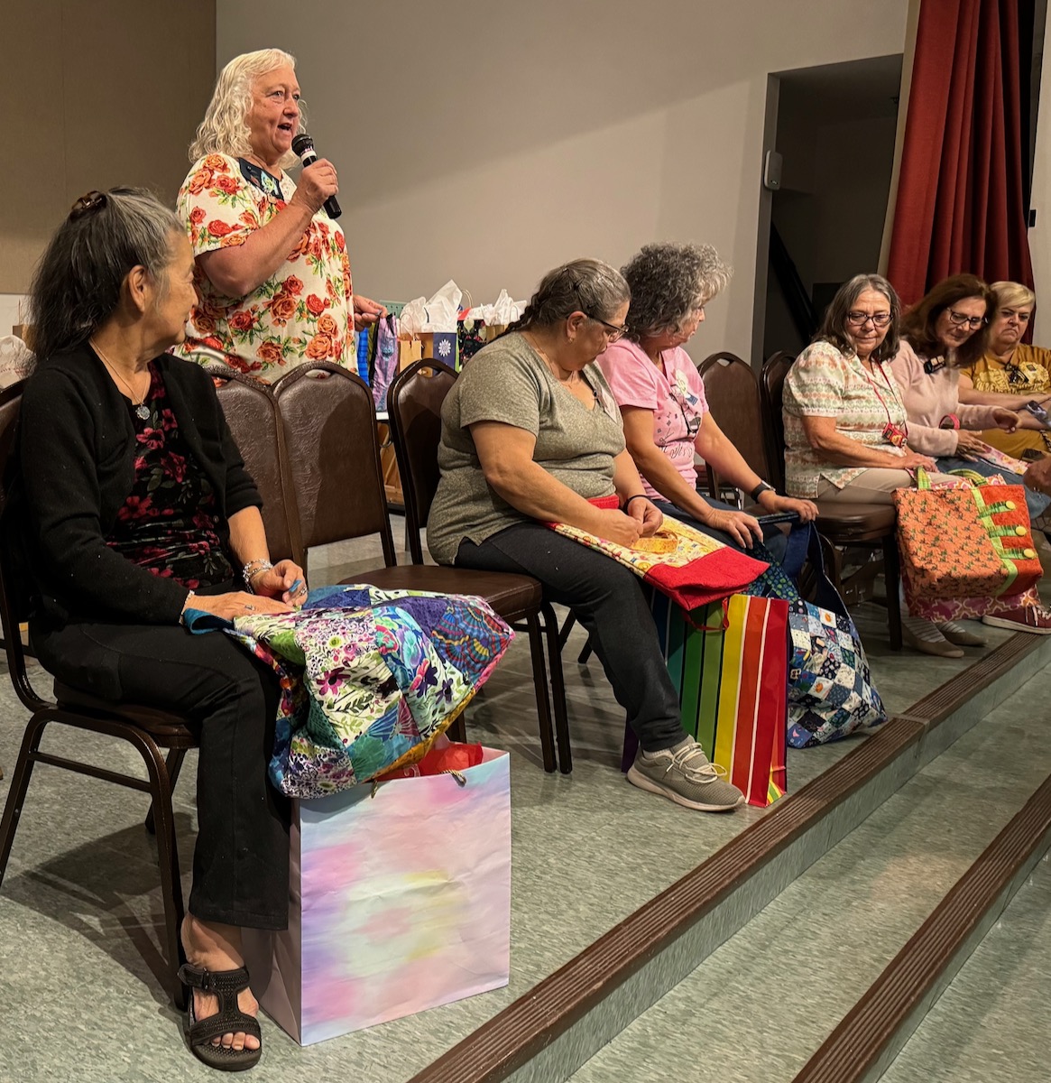 “We had a wonderful Veterans Day Program at the Goeske Center, November 9th at 10 AM. I only had 4 confirmed names attending and we gave out an additional 5 quilts. I had mailed 4 quilts to Veterans who could not attend the program. We have 11 quilts available and will schedule another date with the Goeske Center as soon as we get a list together. Thanks to all who helped make the the quilts, quilt the quilts, bind them, wash them and attach the labels.