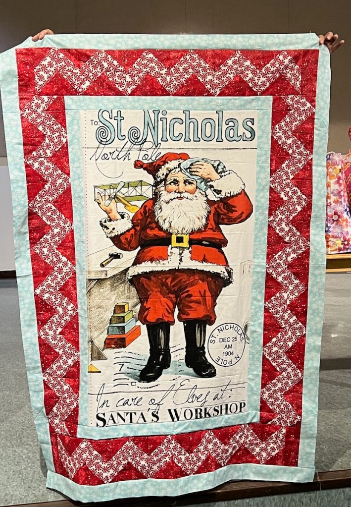 Row 3: Lorraine Halverson (tree), Michelle Coiro (Santa Quilt, picture of Michelle, who was shy)