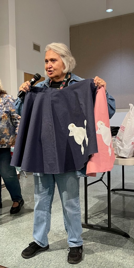 We had a fun and varied group of shares this meeting, from poodle skirts from Dorothy Martinez (on the left) to Christmas makes.