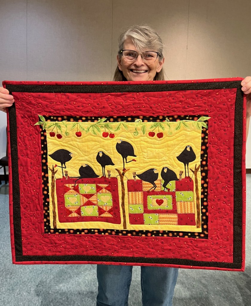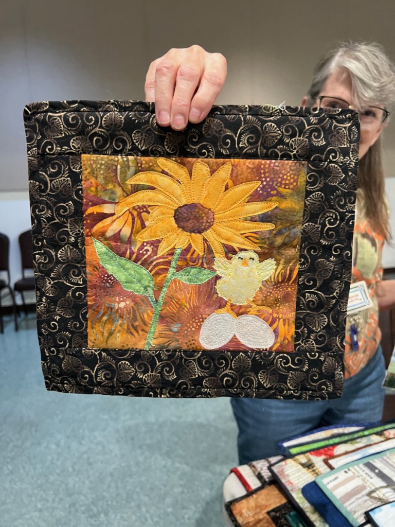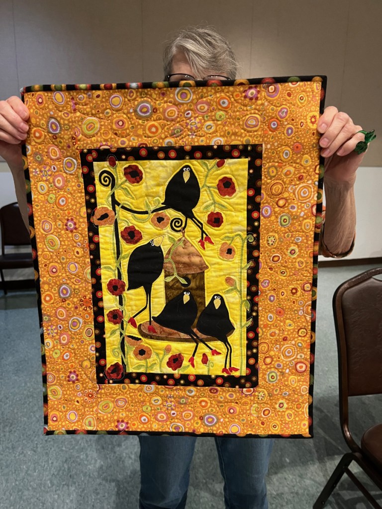 Next month Phyllis Hodel and/or Tami Alexander will talk about how to prepare a quilt to be quilted on a long arm quilting machine. Can’t wait to see you all again!