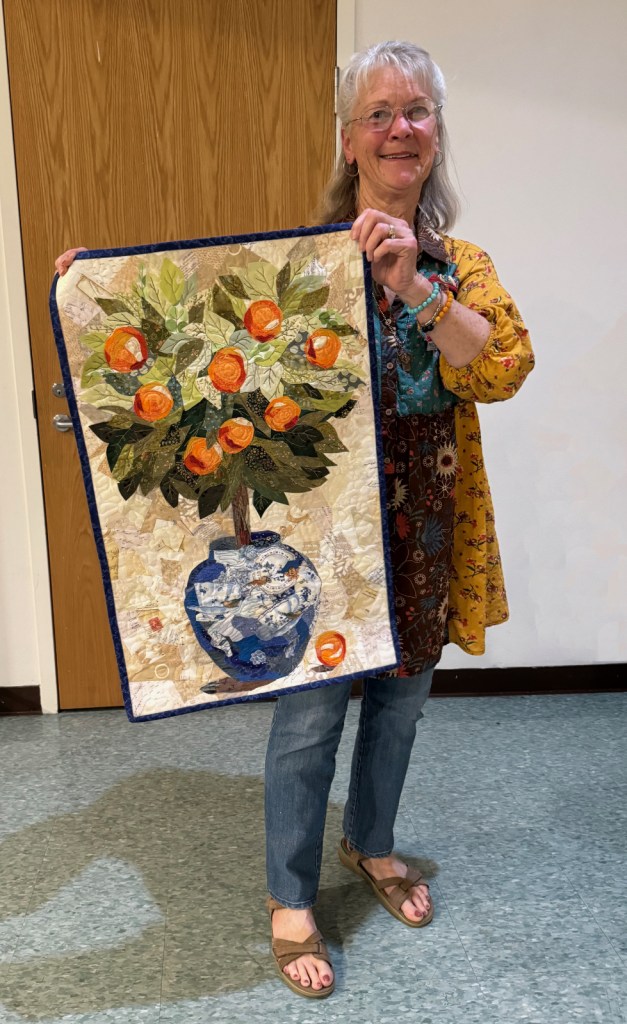 McKenna Ryan, among others. In the photo above, at the end of Barbara’s presentation photos, she is holding Emily Taylor’s collage Tangerine Tree.