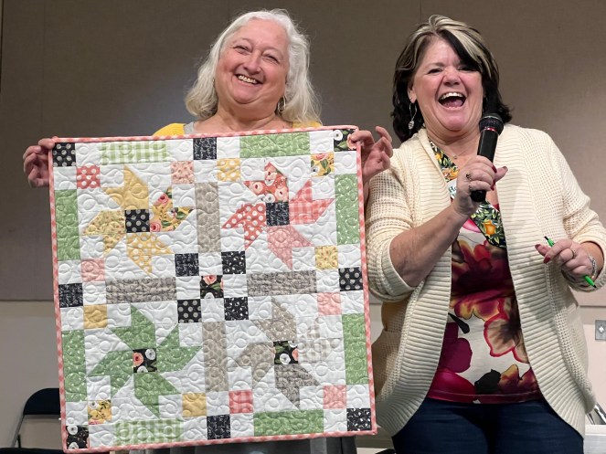 As I sit and contemplate the last 20+ years of being the leader of this fabulous group of quilters, I’m listening to the birds and looking at the beautiful flowers in my yard (thanks to my husband Marty) and the memories are are of all of the men and women who have touched my life with beauty and color! Quilters are my favorite part of being a quilter.
