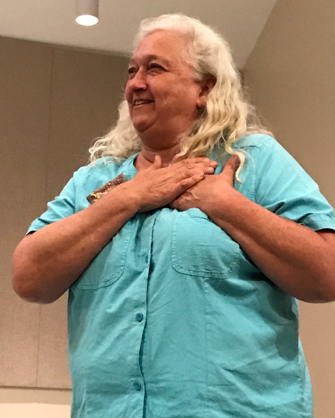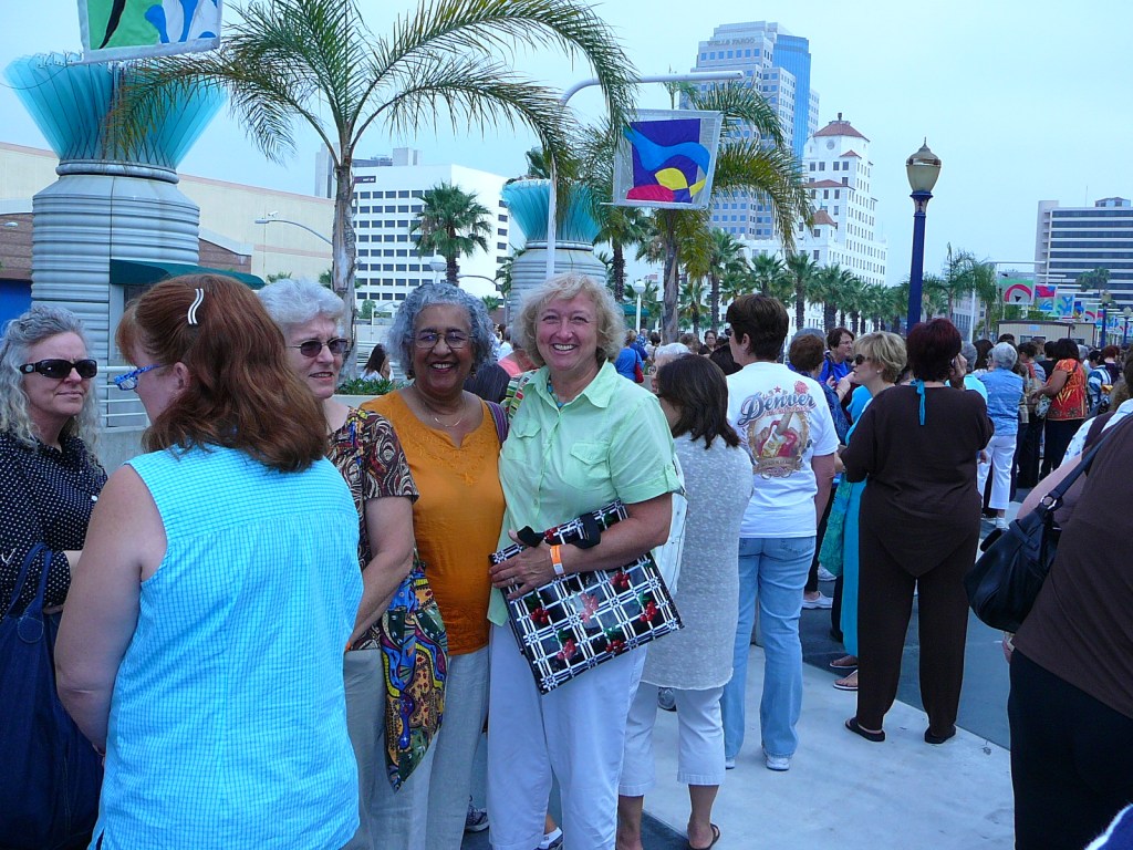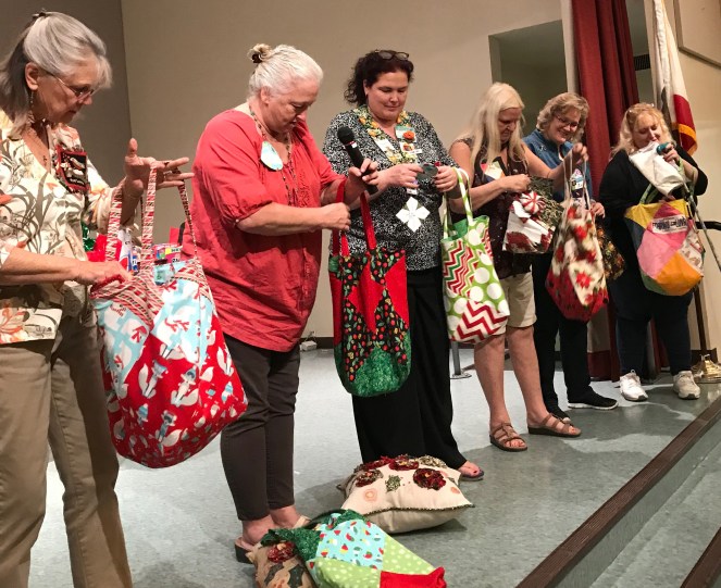As an advance to the upcoming meeting and to start our farewells to our esteemed President Read, I went through all the photos we had from this and our archived website: from the Long Beach Quilt Show trip in 2010 (below), to the more recent images, pulling pictures of Jeri all the way. I created two slideshows. Jeri was everywhere, all the time, cheering us on, happy we made quilts and happy we were sharing them, talking us through these years with encouragement and a loving heart. Raincross Quilt Guild owes much to their membership, for stepping up to serve and to do charity work, but we also owe much more to Jeri, for her determination and persistence. We love you, Jeri: here’s to 24 years!!