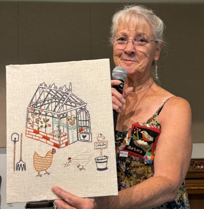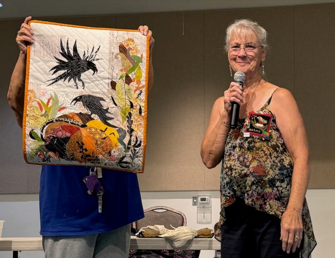 Don’t miss next month’s meeting!! We have a delightful speaker, Tina Curran, who will be sharing “My Design Process From Concept to Quilt.” Even though I’ve never designed my own pattern, I can’t wait to hear how it all comes together! We’ve also scheduled her to do a workshop on Nov 9 – “Whimsical Garden,” a combination of pieced and raw edge appliqué. More information is in the Programs Tab. We’ll be taking sign-ups next month.