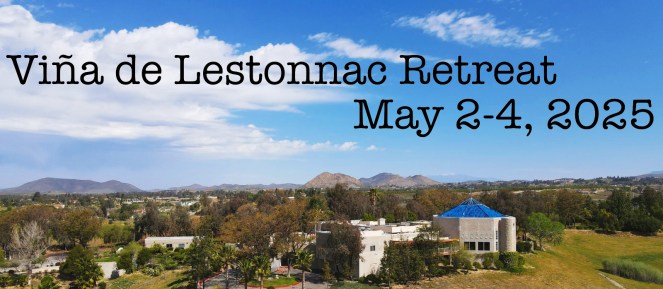 Now announcing sign-ups for next spring’s retreat at the Viña de Lestonnac, coming May 2-4, 2025. Please see the Activities Tab (above) for a downloadable retreat form. For more information, please contact Linda Adams or Mary Mertz, whose information is found on the roster in our Members Only.