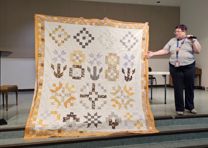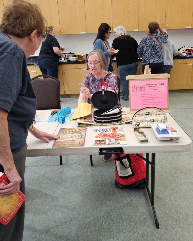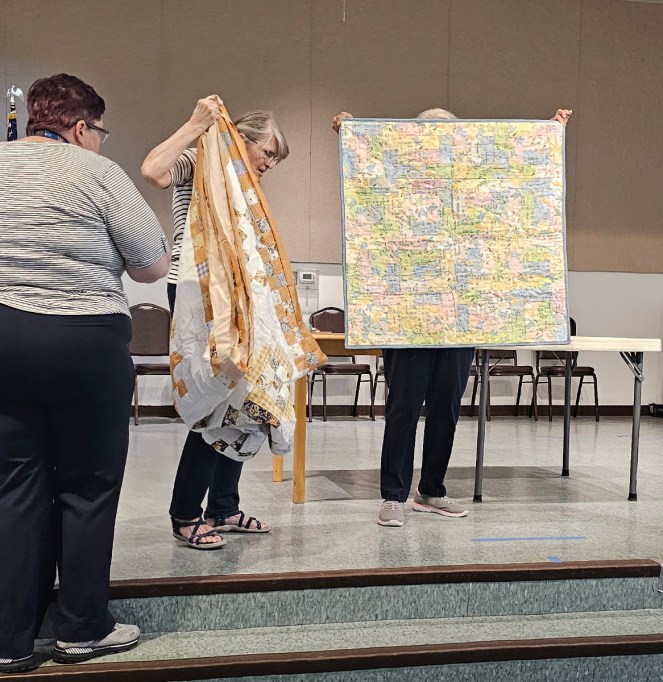PS I heard back from Road to CA regarding the Guild spotlight. I’m going out on a limb and saying, “yes”, we can meet the requirements, put our name in the hat! They’ll be drawing on Oct 2. Here’s what we need: No more than 72″ long, and less than 100″ wide, with a 4″ attached sleeve at the top. We need 40 – 44 quilts and 4 people to assist in the hanging on Saturday, Jan 18, 2025.