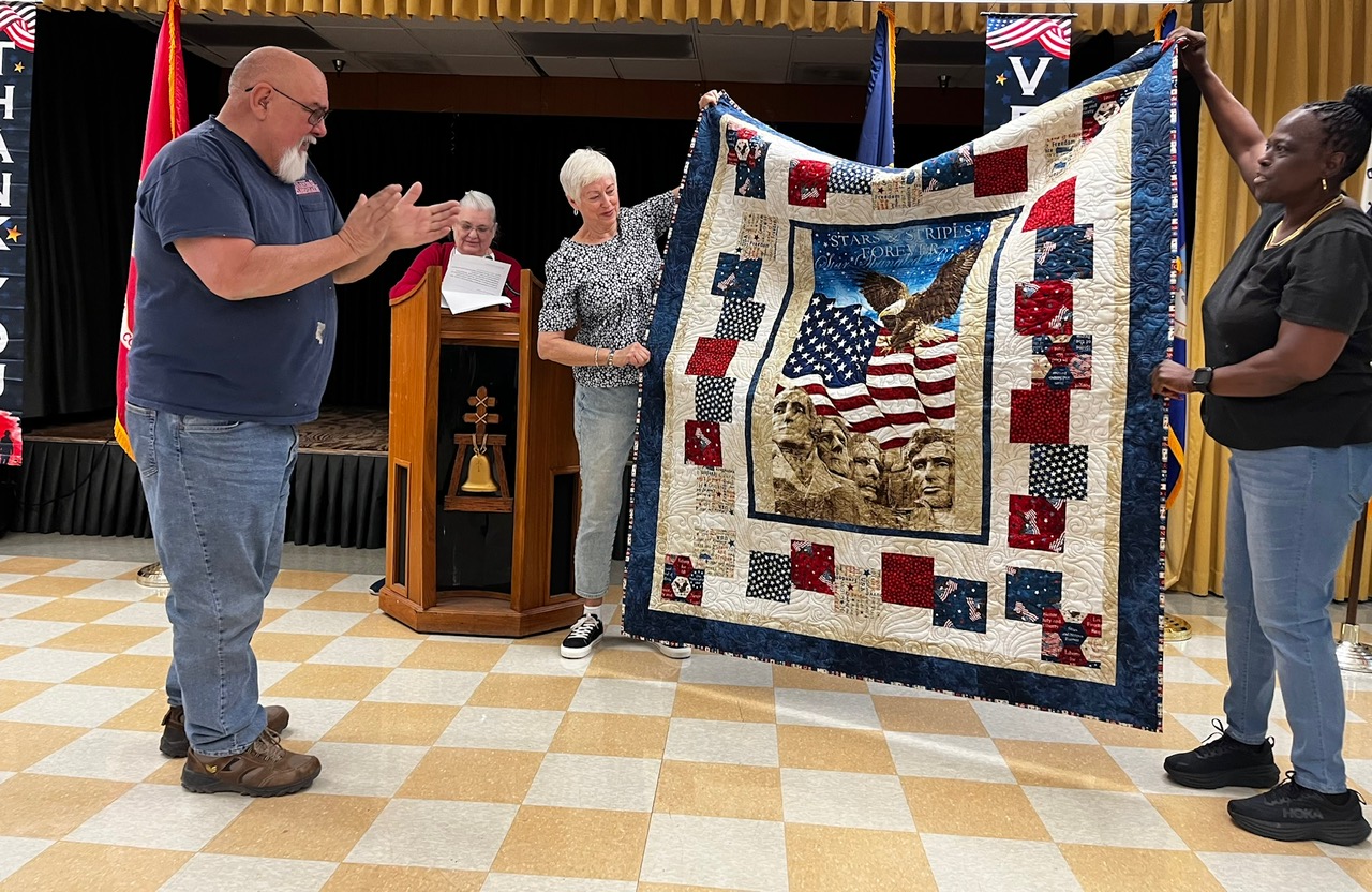 Quilts of Valor Quilts of Valor Presentation • November 8, 2024 November 12, 2024 raincrossquiltguild Thanks to Sue Carter, for sending over these photos. Enjoy! Click on any block to enlarge. Thank you so much to all who made quilts, and to those who were there as presenters. We appreciate you! Share this: Click to share on X (Opens in new window) X Click to share on Facebook (Opens in new window) Facebook Like Loading... Related Share this: Click to share on X (Opens in new window) X Click to share on Facebook (Opens in new window) Facebook Like Loading...