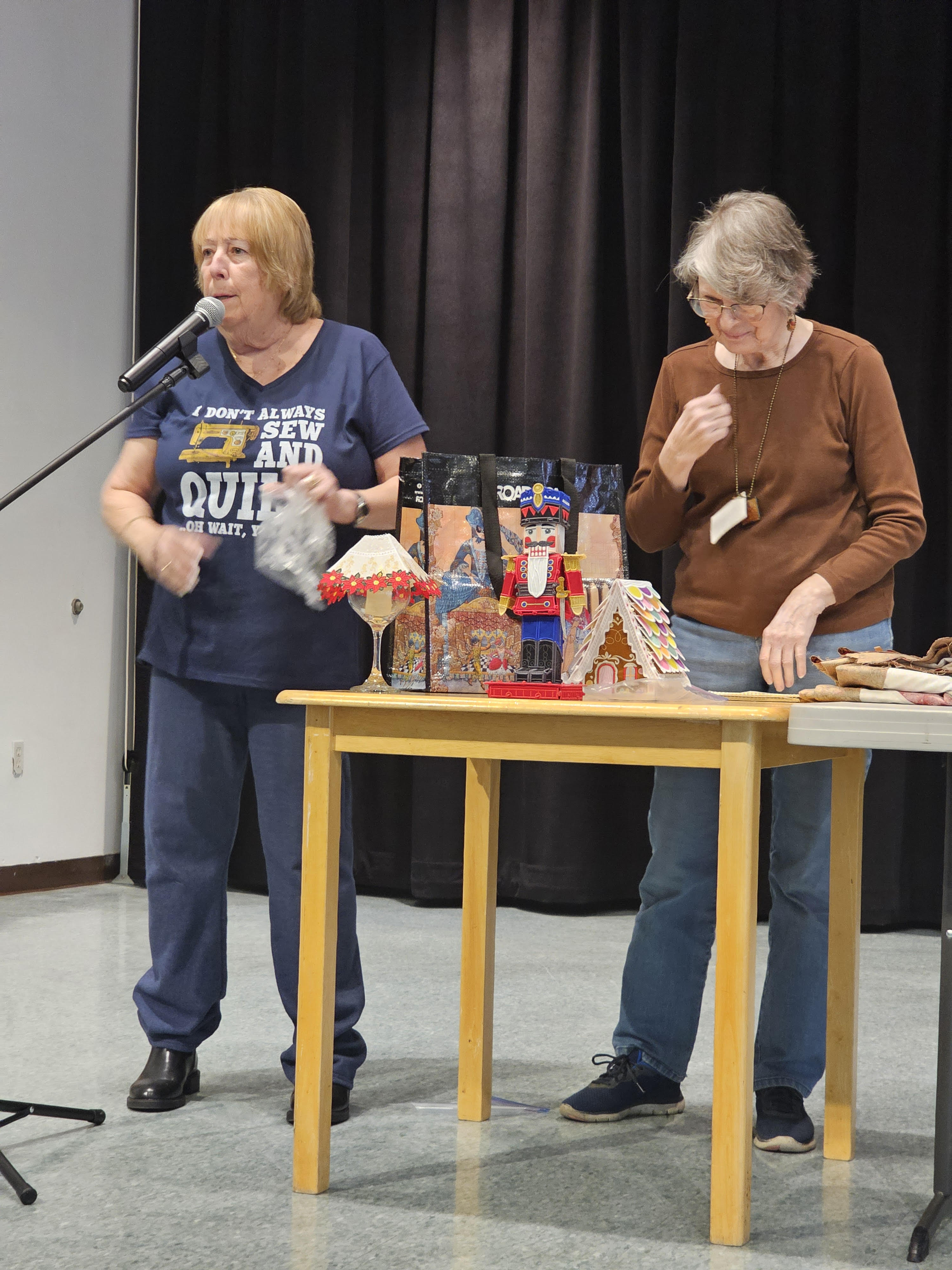 Here are Debbie Warner and Barbara Mathews, handing out the Door Prizes.
