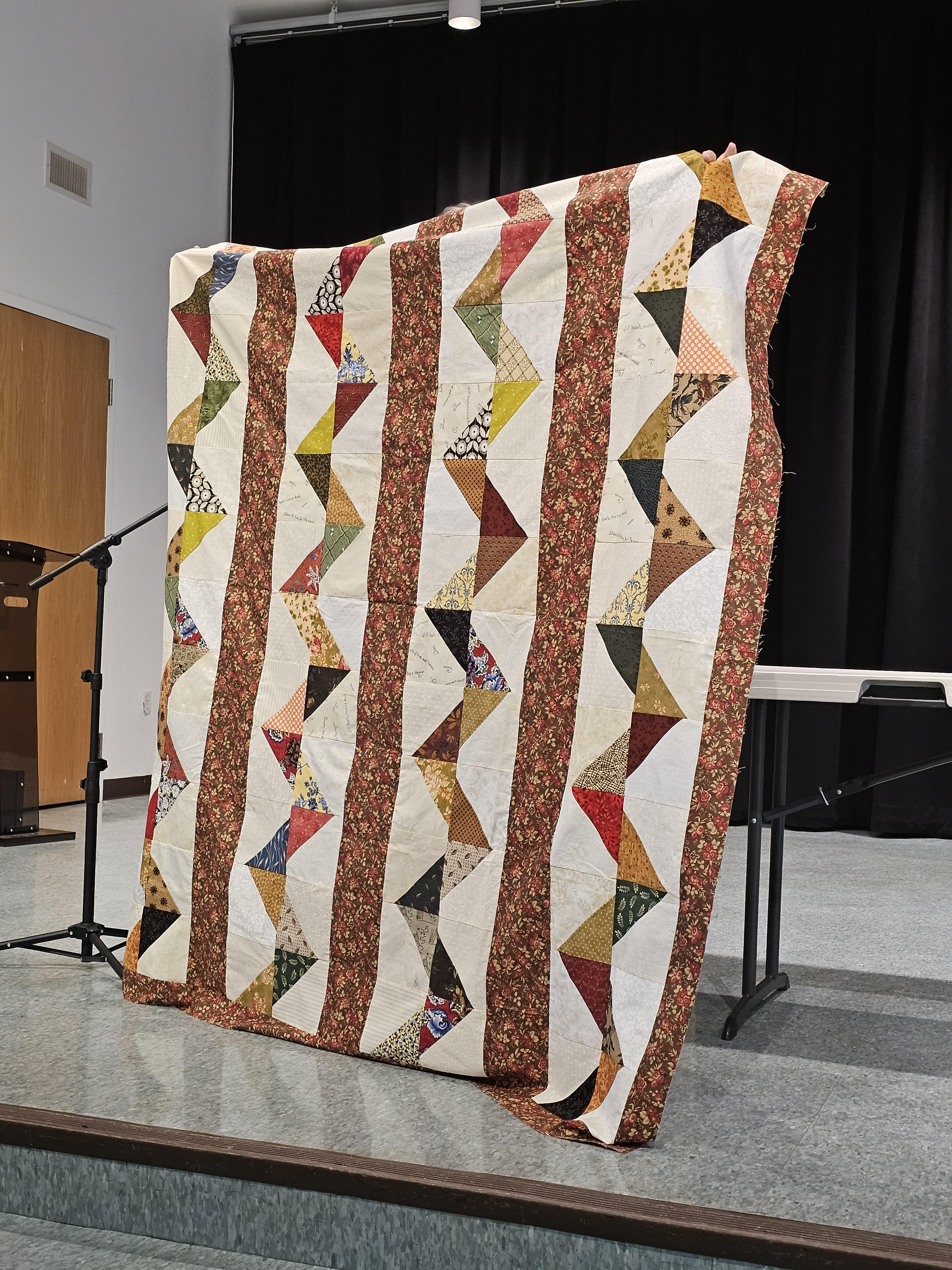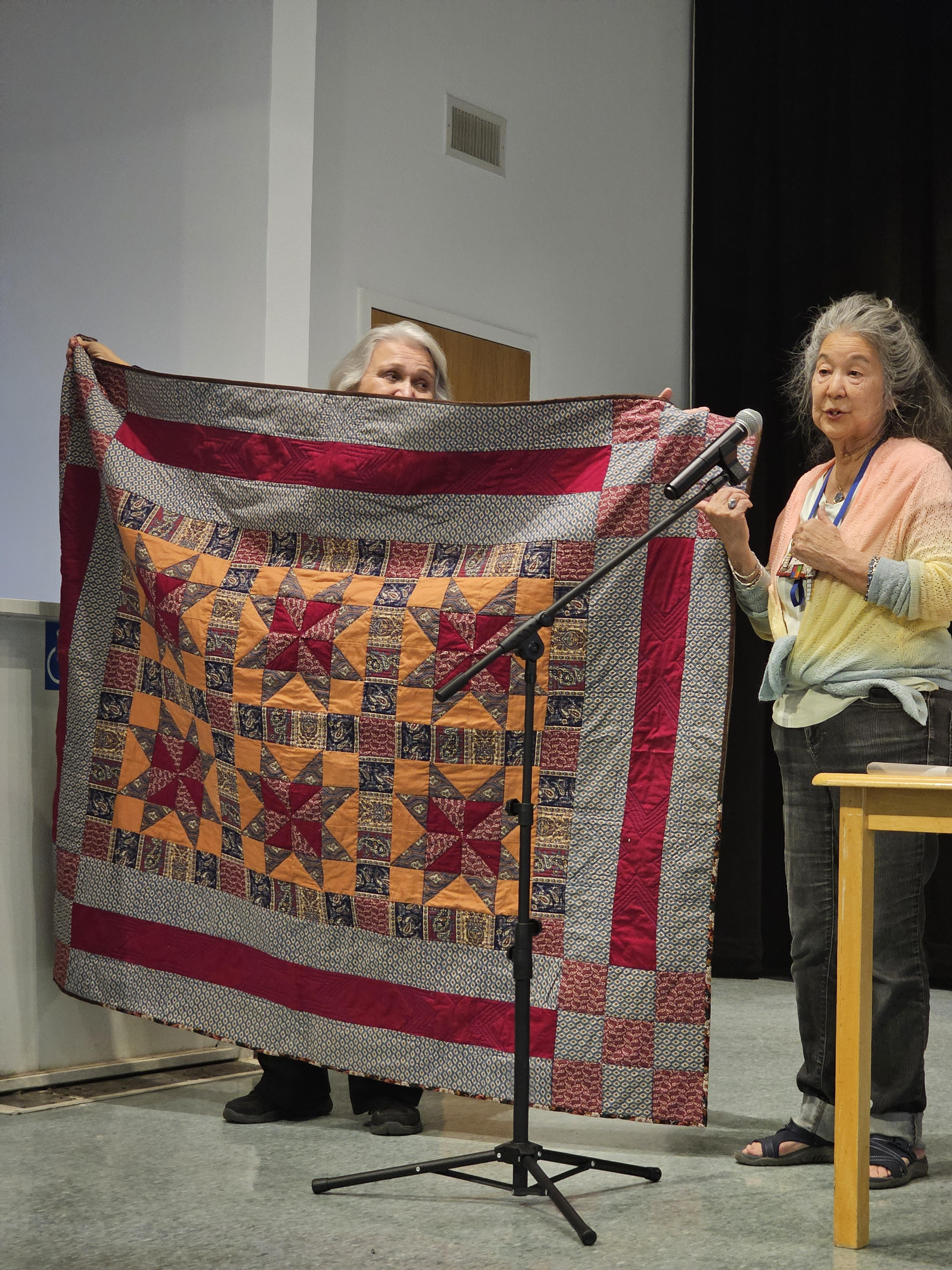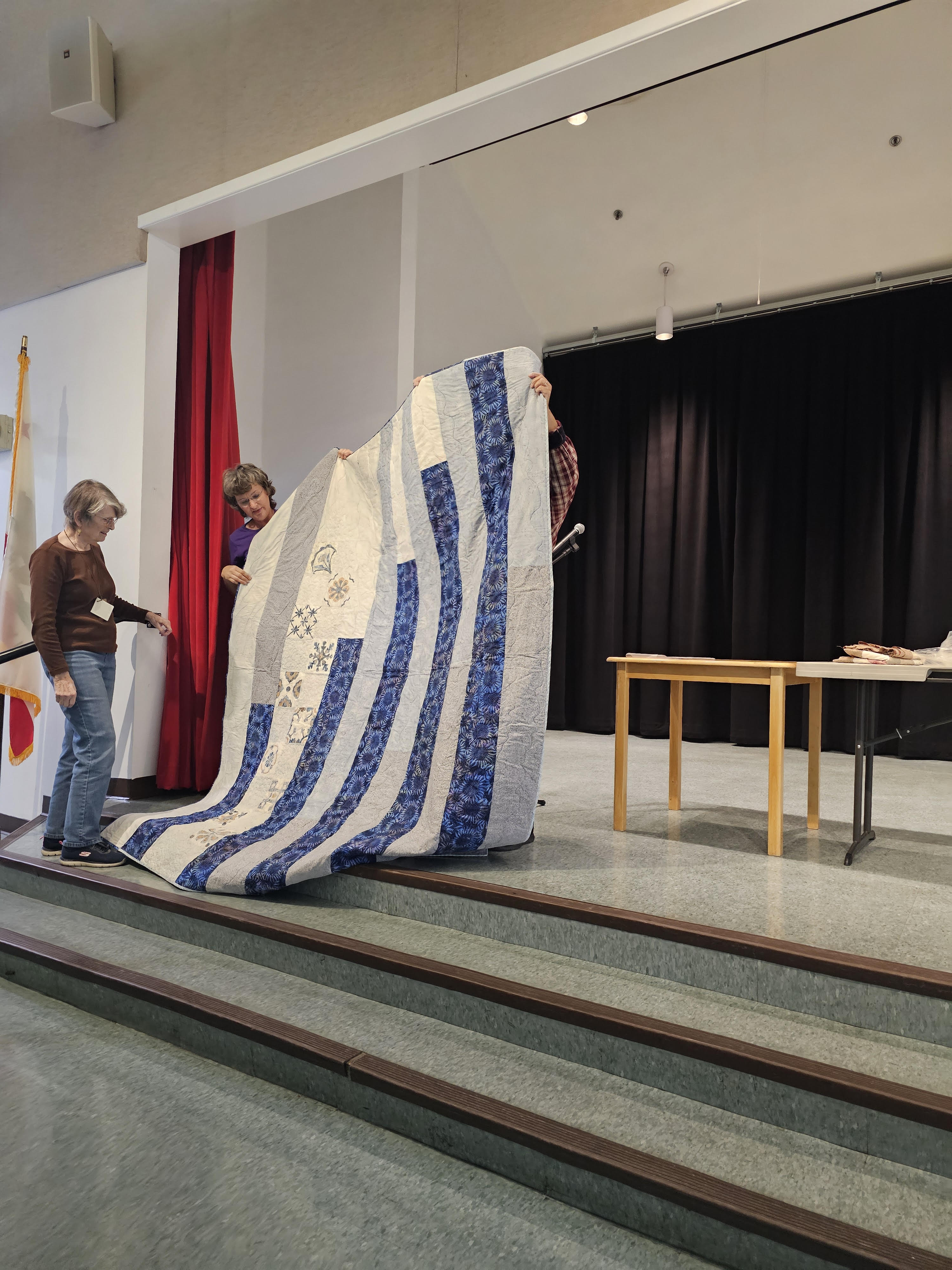 Barbara Filbin is our new Quilts of Valor contact person, and ever-organized. She brought quilts and batting for people to take home. Her report on what she needs from us is found in the Minutes from our Meeting (download to read all the important information). The minutes also contain our announcements and general business from that evening–please read them! We are indebted to our Secretary, Barbara Kaiser, for all she does to keep us informed.