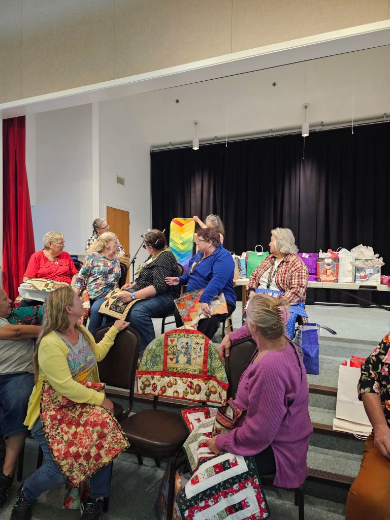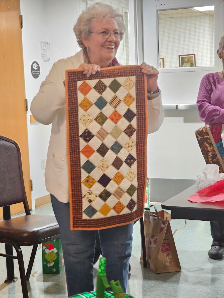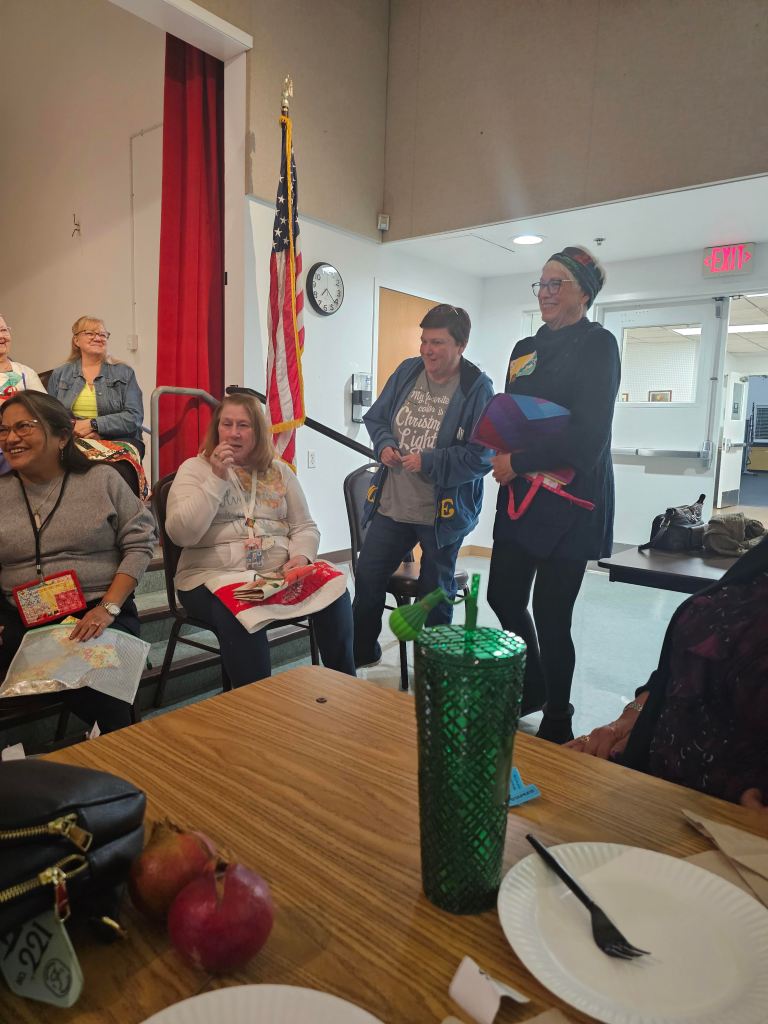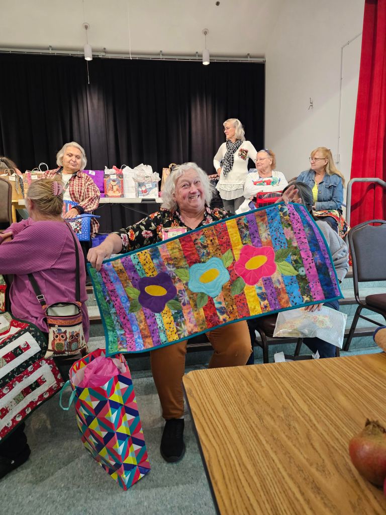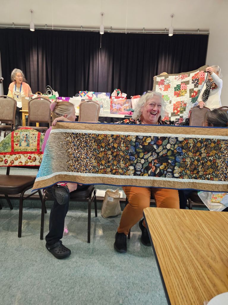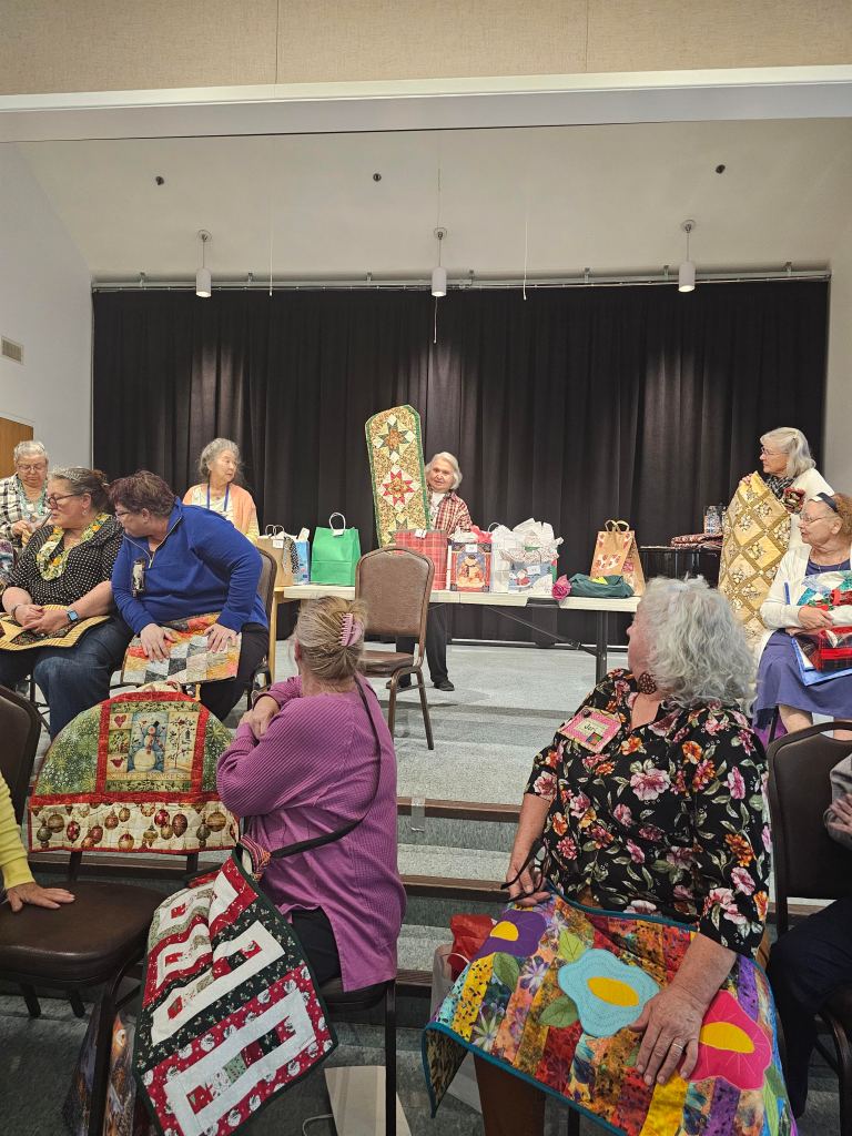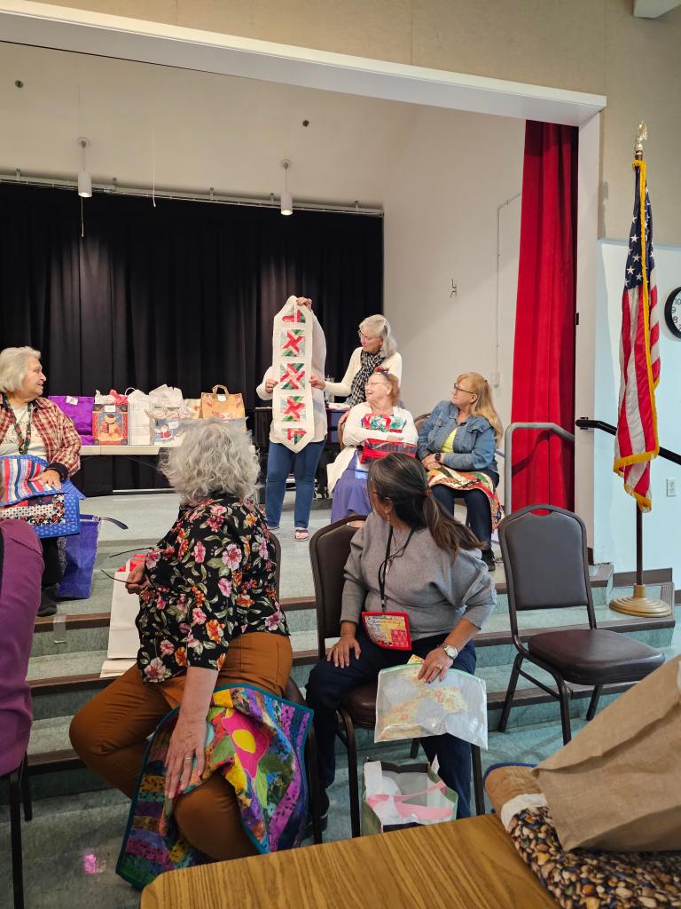The Raincross Quilters Guild came together Thursday, November 19, 2024 and we brought our stuff to swap!! We brought table toppers and table runners for the annual Swap/Exchange game; so many beautiful items were traded. Thank you to all who came and thanks also to Maria Copak and Fern Fujimoto running the show.